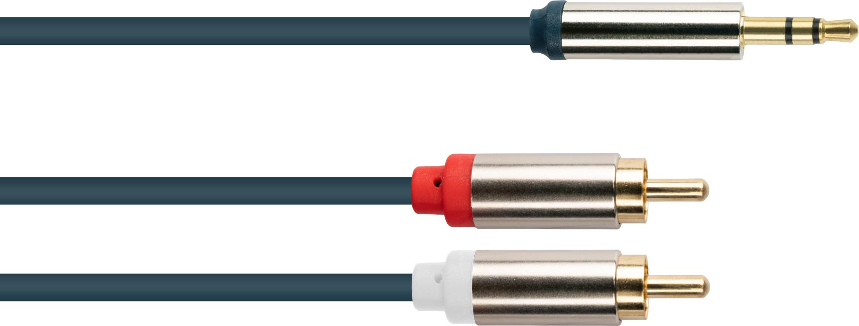Audio Anschlusskabel High-Quality 3,5mm, Klinkenstecker an 2x RCA Stecker, Vollmetallgehäuse, dunkelblau, 3m, Good Connections (GC-M0060)