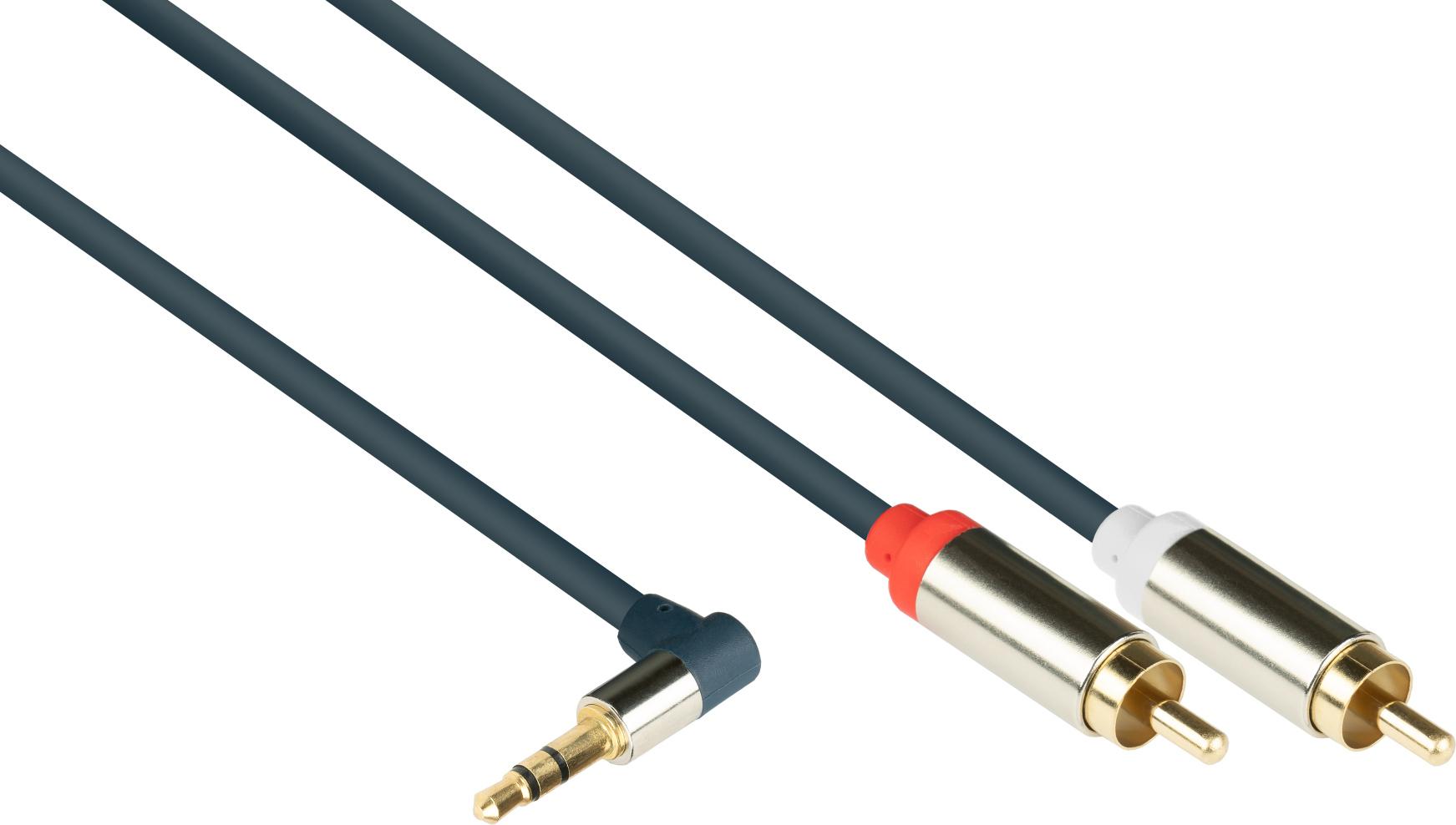 Audio Anschlusskabel High-Quality 3,5mm, Klinkenstecker rechts abgew. an 2x RCA Stecker, Vollmetallgehäuse, dunkelblau, 0,5m, Good Connections (GC-M0062)