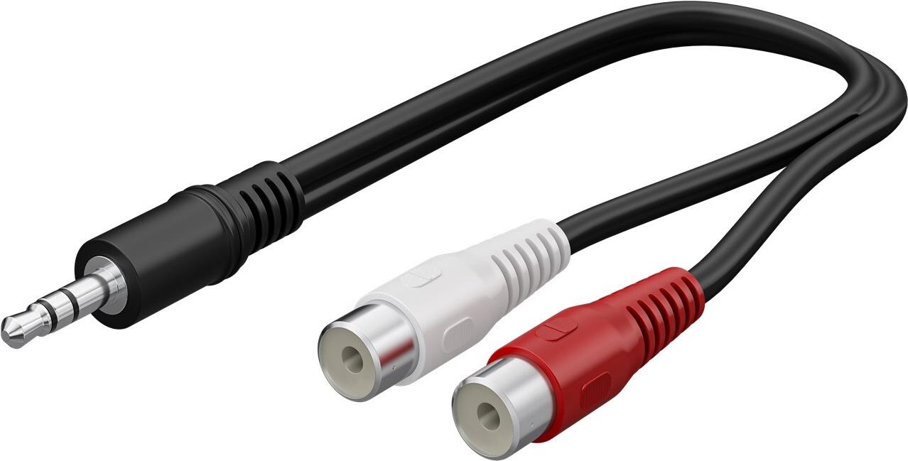 Wentronic Goobay 3,5mm-Klinke-/Cinch-Adapterkabel, Schwarz, 0.2 m - Klinke 3,5 mm-Stecker (3-Pin, Stereo) > 2x Cinch-Buchse (Audio links/rechts) (50600)