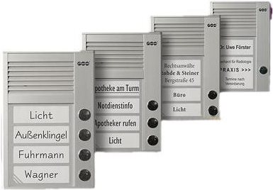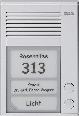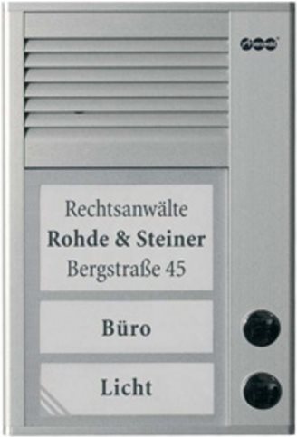 Selbst wenn Ihre Telefonanlage keine TFE-Schnittstelle hat - das TFS-Dialog 200 mit seinem zeitlosen Design sorgt für höchsten Komfort in der Bedienung. Es wird über ein zweiadriges Kabel direkt an einen a/b-Port Ihrer Anlage angeschlossen und verhält sich ähnlich wie ein Telefon: Wird eine „Klingel"-Taste gedrückt, wählt das Türsprechsystem eine vorher festgelegte, interne oder externe Rufnummer. Von Ihrem Telefon aus können Sie dann mit dem Besucher sprechen - in hervorragender Sprachqualität dank hochwertiger Mikroelektronik - und ihm die Tür öffnen. Und die weiße LED-Hintergrundbeleuchtung sorgt bei Dunkelheit für gleichmäßig und hell ausgeleuchtete Namensschilder.