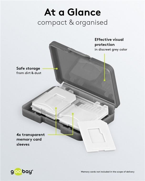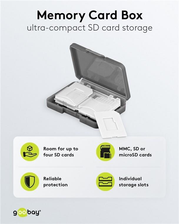 Wentronic Goobay Speicherkarten-Transportbox, Transparent-Grau - passgenau für max. 4x SD/microSD/MMC-Karten (95349)