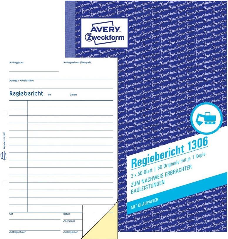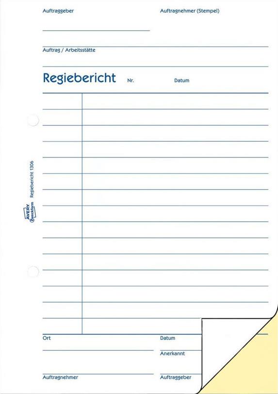 Die Bauformulare von Avery Zweckform sind unverzichtbare Helfer für Bau und Handwerk. Der Regiebericht eignet sich besonders, um die tägliche Arbeitsleistung und den Materialverbrauch zu dokumentieren. Der Regiebericht im DIN A5 Format beinhaltet 2 Blatt Blaupapier. Die Bauformulare von Avery Zweckform sind vorgelocht, für eine schnelle Ablage!
