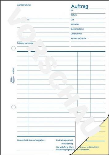 Stellen Sie sicher, dass Sie bei der Vergabe von Aufträgen keine wesentlichen Details übersehen. Die Aufträge von Avery Zweckform bieten Ihnen die Möglichkeit alle nötigen Angaben abzudecken. Der FSC-zertifizierte Auftrag im DIN A5 Format ist selbstdurchschreibend und mit schreibmaschinengerechtem Zeilenabstand ausgestattet.