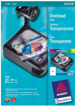 Erstellen Sie hochwertige Präsentationen für die nächste Besprechung oder Unterrichtsstunde mit Overheadfolien von Avery Zweckform. Die A4 Overheadfolie, mit einer Folienstärke von 0,11 mm, sorgt dank Inkjet-Spezialbeschichtung für eine brillante Farbwiedergabe und konturenscharfen Farbpunktverlauf. Die schnelle Farbaufnahme verhindert Verschmieren und Verlaufen der Tinte. Die Overheadfolie ist stapelverarbeitbar, lösemittelfrei und beinhaltet 50 Folien. Gestalten Sie Overheadfolien von Avery Zweckform einfach und schnell am PC und drucken Sie darauf Ihre Texte und Bilder.