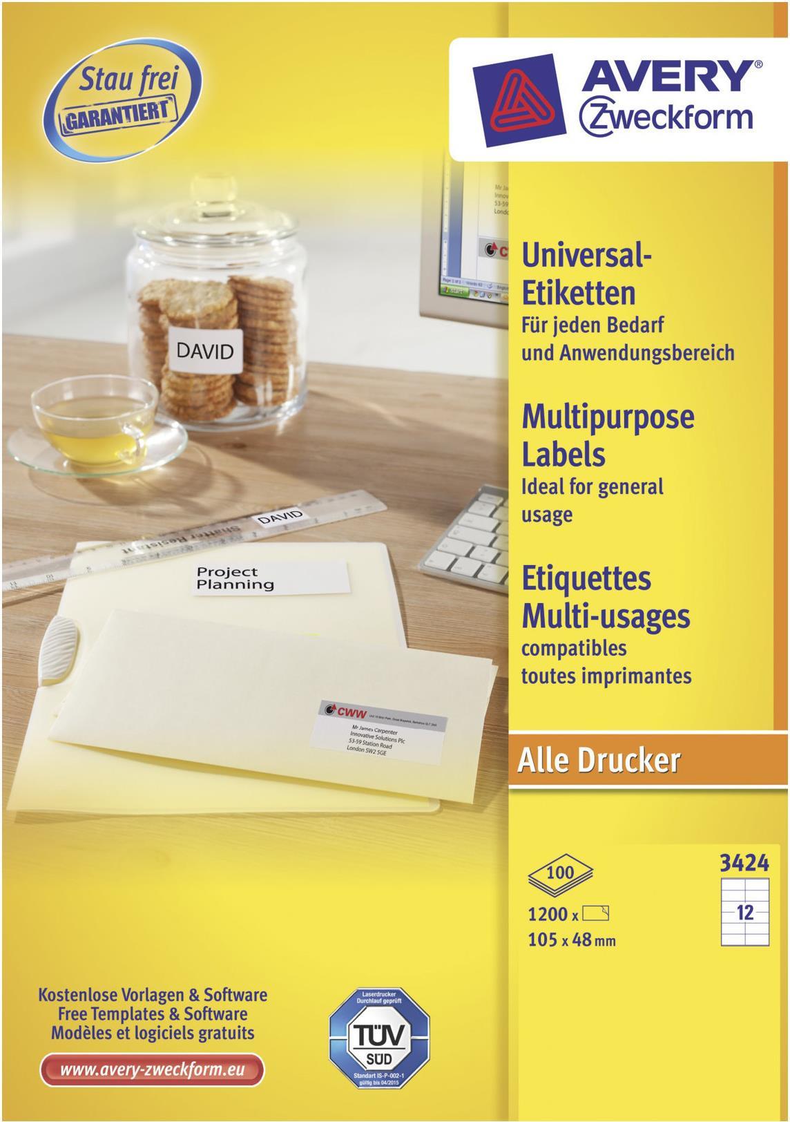 Avery - Mehrzwecketiketten - weiß - 105 x 48 mm 1200 Etikett(en) (100 Bogen x 12) (3424)