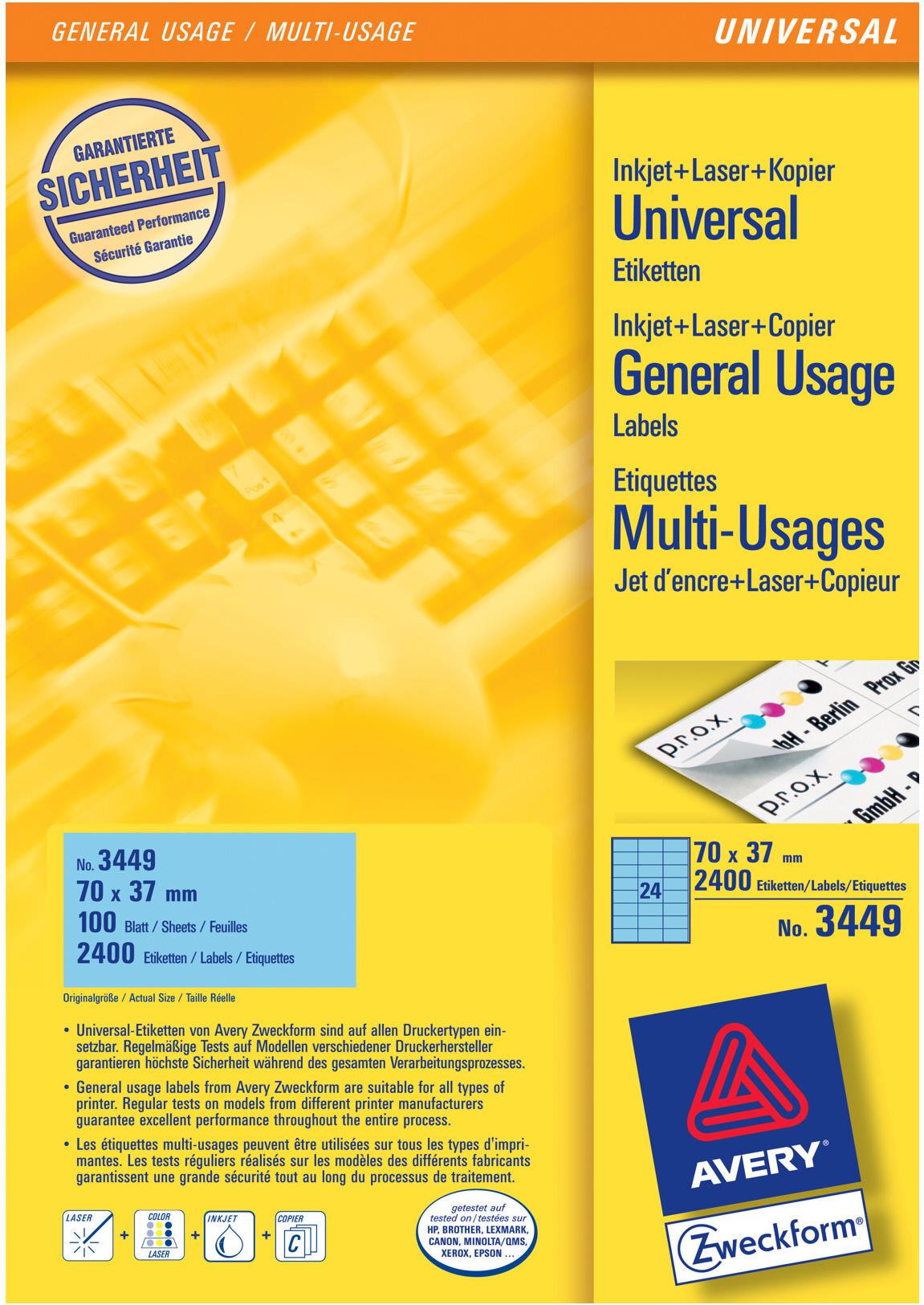 Avery - Aktenetiketten (File Folder Labels) - Blau - 70 x 37 mm - 2400 Etikett(en) (100 Bogen x 24) (3449)