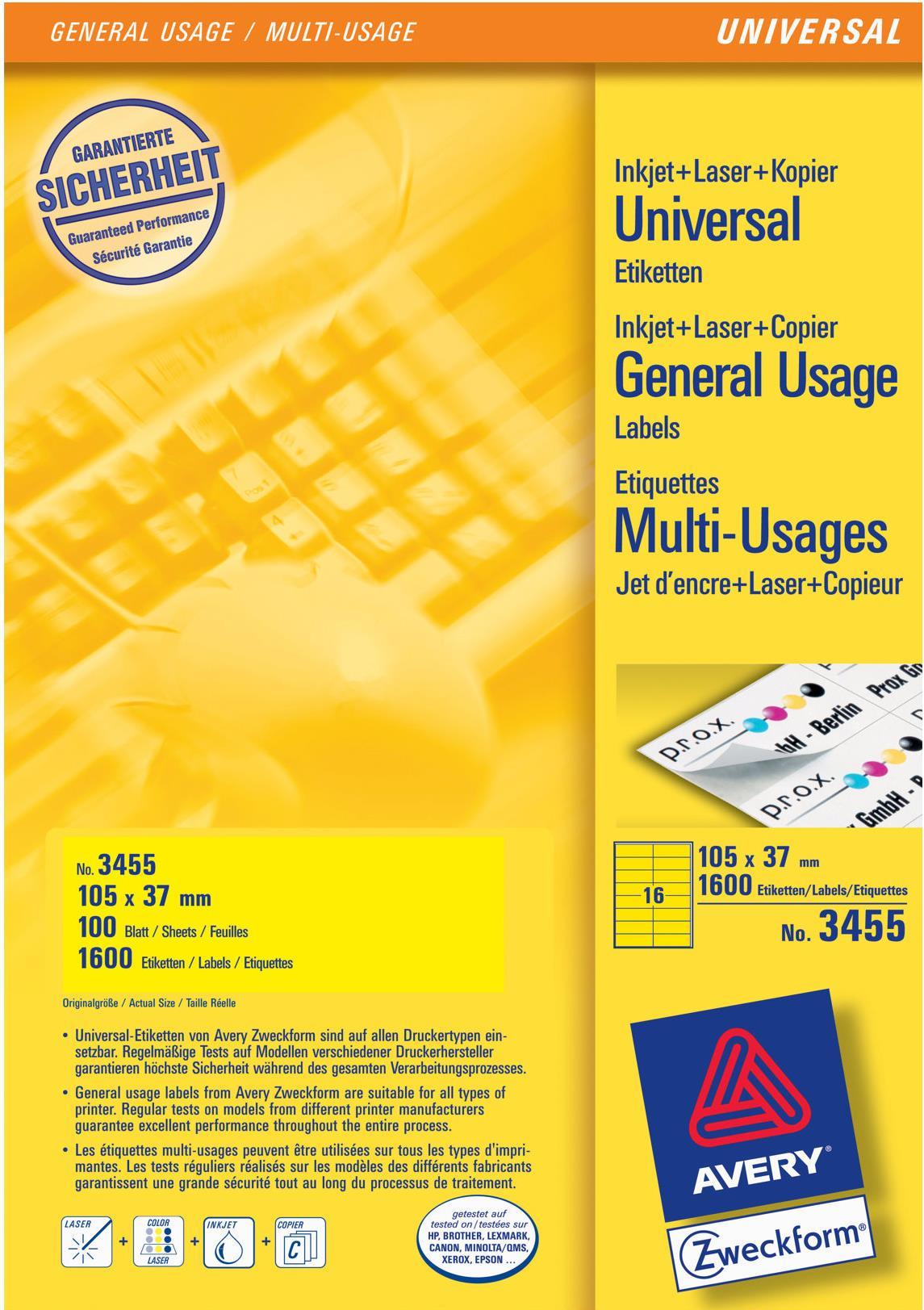 AVERY Zweckform Universal-Etiketten, 105 x 37 mm, gelb (3455)