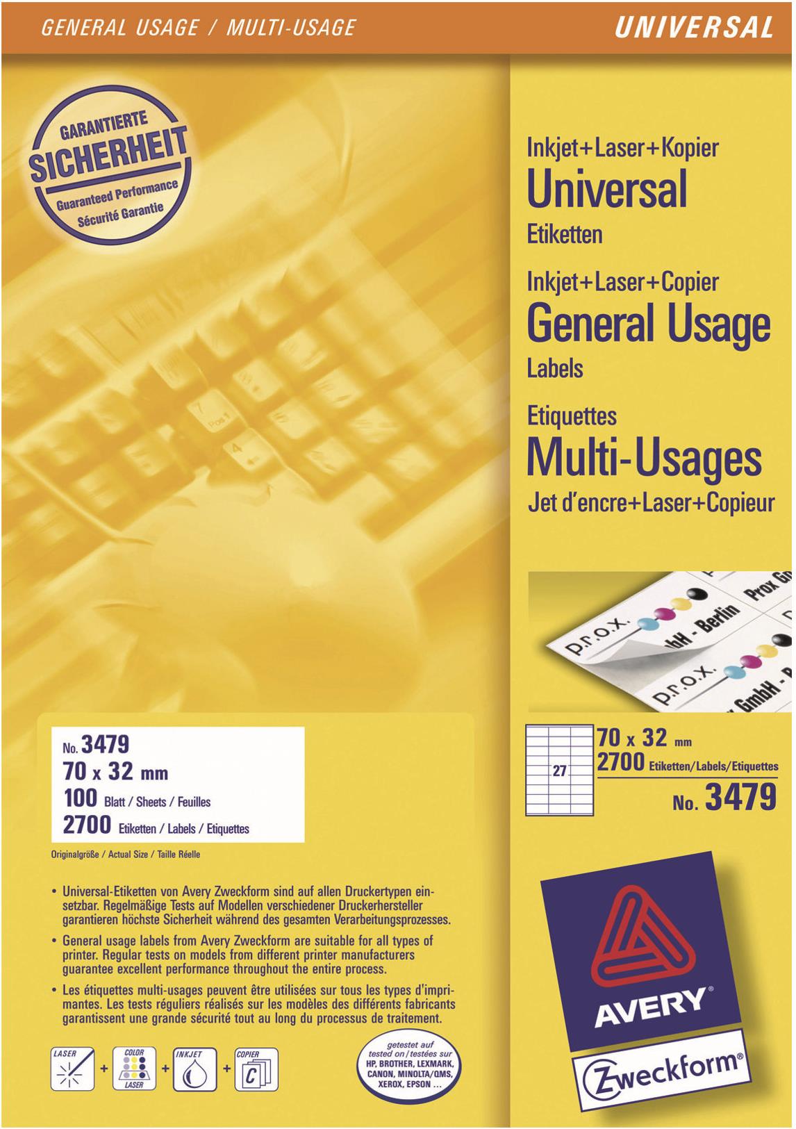 Die Universal-Etiketten von Avery Zweckform sind für alle gängigen Drucker und Kopierer geeignet und garantieren einen staufreien Druckerdurchlauf. Druckerdurchlauf für Laserdrucker getestet und bestätigt durch TÜV. Diese Aufkleber bieten Ihnen für jeden Bedarf und Anwendungsbereich die passende Lösung. Mit den Universal-Etiketten im Format 70 x 32 mm können Sie z.B. Fächer und Schubladen kennzeichnen. Dank der kostenlosen Avery Zweckform Vorlagen und Software-Lösungen können Sie die Universal-Etiketten schnell und einfach gestalten und drucken!