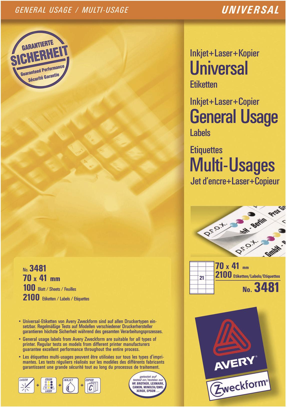 Avery - Mehrzwecketiketten - weiß - 70 x 41 mm 2100 Etikett(en) (100 Bogen x 21) (3481)