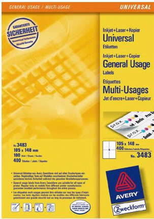 Avery - Mehrzwecketiketten - weiß - 105 x 148 mm 400 Etikett(en) (100 Bogen x 4) (3483)