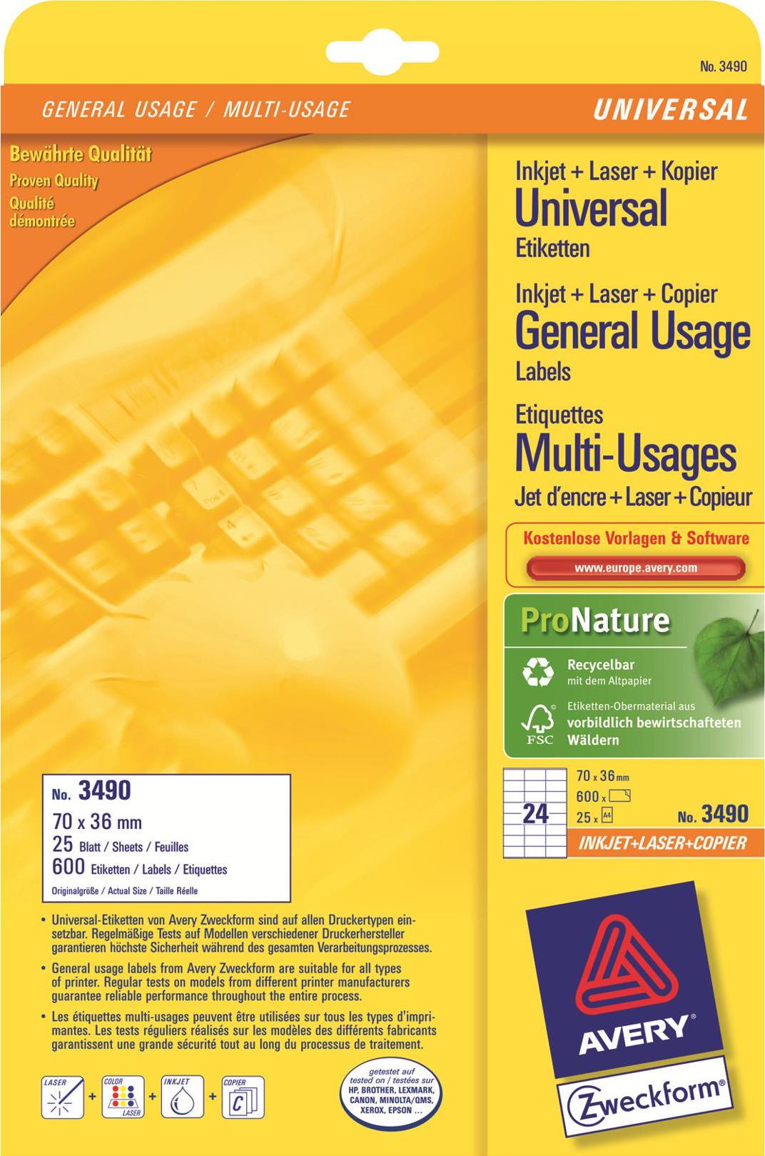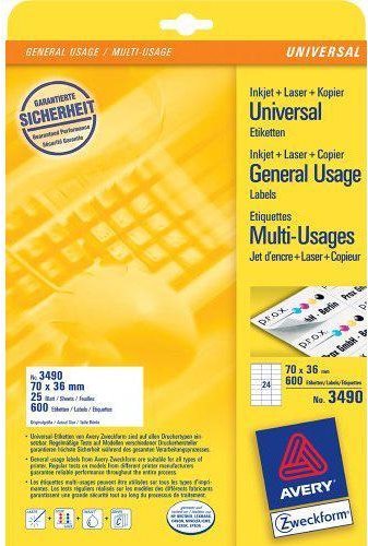Die Universal-Etiketten von Avery Zweckform sind für alle gängigen Drucker und Kopierer geeignet und garantieren einen staufreien Druckerdurchlauf. Druckerdurchlauf für Laserdrucker getestet und bestätigt durch TÜV. Diese Aufkleber bieten Ihnen für jeden Bedarf und Anwendungsbereich die passende Lösung. Mit den Universal-Etiketten im Format 70 x 36 mm können Sie z.B. Werbemittel aktualisieren. Dank der kostenlosen Avery Zweckform Vorlagen und Software-Lösungen können Sie die Universal-Etiketten schnell und einfach gestalten und drucken!