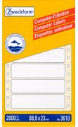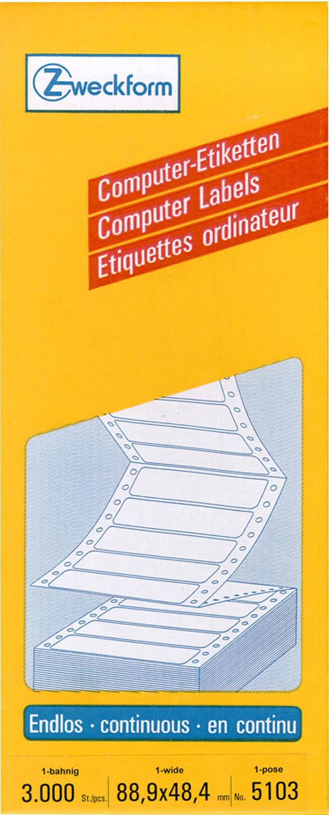 Nutzen Sie die Endlosetiketten von Avery Zweckform. Geeignet für Matrixdrucker. Die Computeretiketten garantieren einen einwandfreien Druckerdurchlauf und weisen hervorragende Rückfalteigenschaften auf. Die Aufkleber sind chlorfrei gebleicht und sind mit lösemittelfreiem Klebstoff versehen.