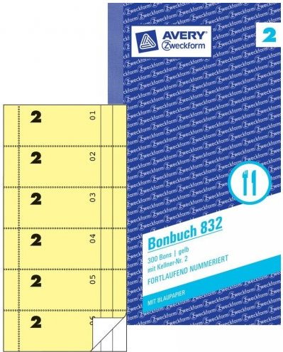 Seien Sie vorbereitet auf den Ansturm Ihrer Gäste zu Ihren Feiern und Festenmit den Bonbücher von Avery Zweckform. Das Bonbuch mit Kellnernummer eignet sich ideal für den Service von Essen und Getränken. Es beinhaltet 300 gelbe Bons mit Kellnernummer. Das Bonbuch ermöglicht einen klaren Überblick über Kasse, Bestellung und Abrechnung.