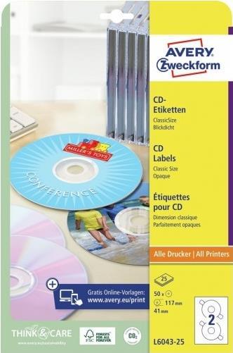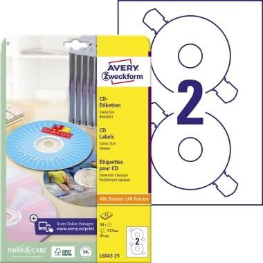 Avery CD/DVD Labels - CD/DVD-Etiketten - weiß - 117 mm rund 50 Etikett(en) (25 Bogen x 2) (L6043-25)