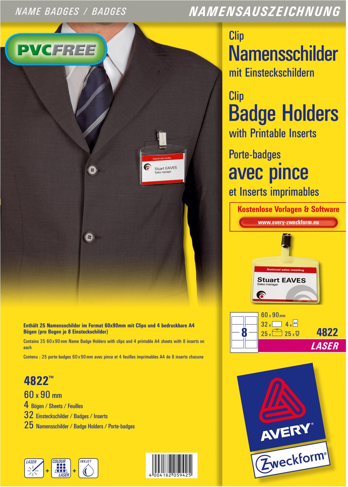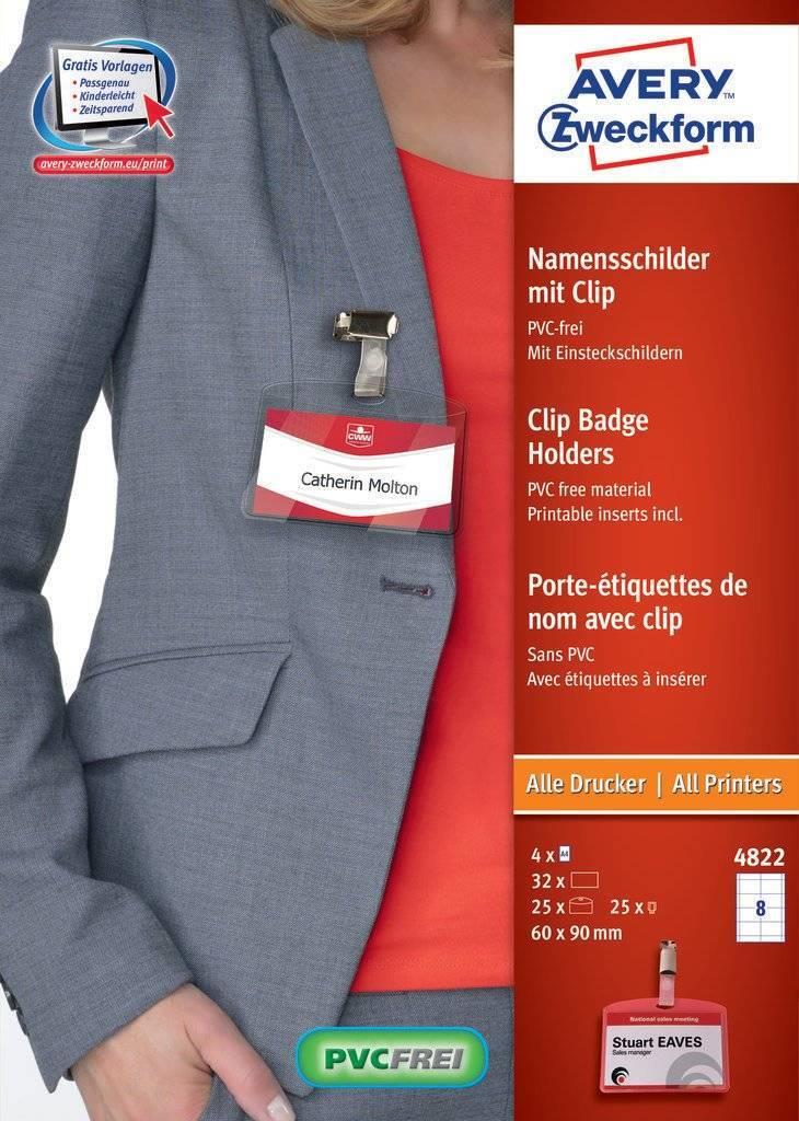 Avery Clip badge - Durchsichtig - 60 x 90 mm 32 Etikett(en) (4 Bogen x 8) Namensetiketten