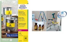 Strapazierfähige, wetterfeste Folien-Etiketten von Avery Zweckform eignen sich überall da, wo Papier-Etiketten überfordert sind. Die Etiketten sich ideal für Beschriftungen, Markierungen und Schilder. Die gelben Folienetiketten im Format 210 x 297 mm sind besonders strapazierfähig und haften auch unter erschwerten Bedingungen im Außenbereich. Dank der kostenlosen Avery Zweckform Vorlagen und Software-Lösungen können Sie die strapazierfähigen, wetterfesten Etiketten schnell und einfach gestalten und drucken!