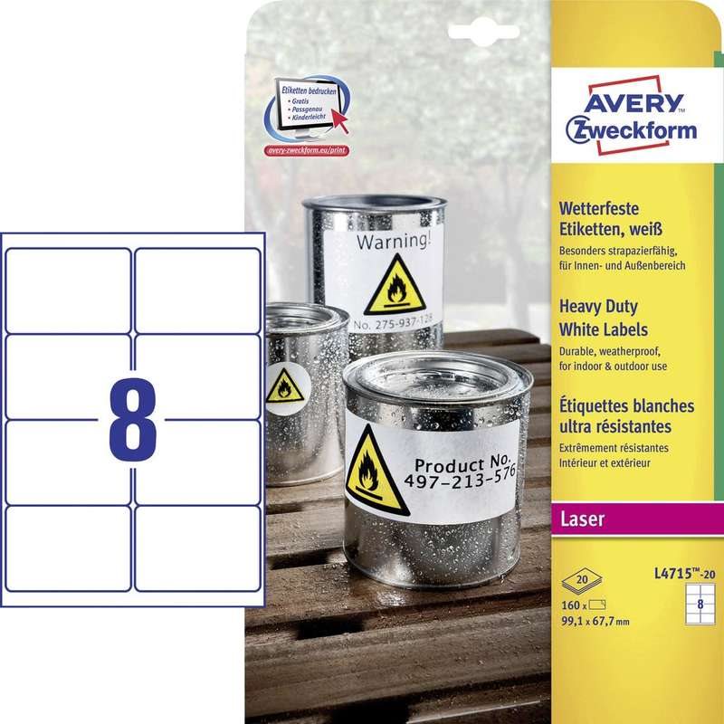 Avery Heavy Duty Laser Labels - Selbstklebende Polyesterfolie - weiß - 99,1 x 67,7 mm - 160 Etikett(en) (20 Bogen x 8) - (L4715-20)