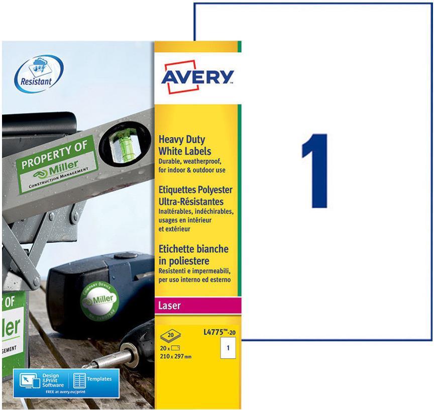 Avery Heavy Duty Laser Labels - Polyesteretiketten - A4 (210 x 297 mm) - 20 Stck. (20 Bogen x 1) - (L4775-20)