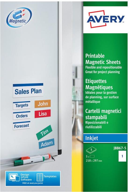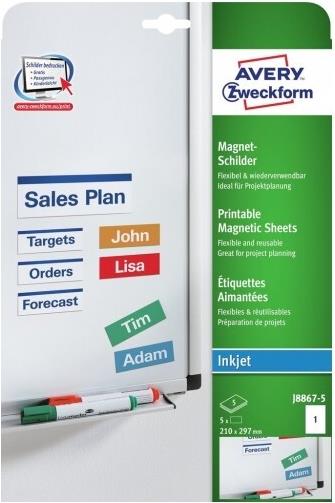 Avery J8867 - Magnetische Etiketten - weiß - A4 (210 x 297 mm) - 5 Stck. (J8867-5)