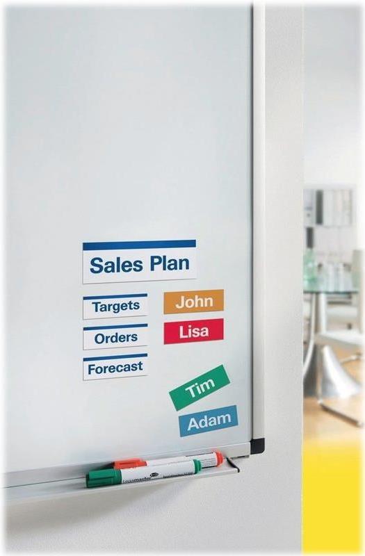 Verwenden Sie die Magnetschilder von Avery Zweckform für Besprechungen. Drucken Sie Ihre Ideen, Arbeitsschritte oder die Namen Ihrer Team-Mitglieder auf die Schilder und heften Sie diese an Ihr Flipchart. Die Magnet-Schilder sind besonders gut geeignet für das Sortieren von Ideen, aber auch für wechselnde Hinweisschilder oder für Urlaubs- und Schichtplanung auf einer Magnettafel. Gestalten und bedrucken Sie die Magnetschilder im Format 210 x 297 mm mit den anwendungsfreundlichen Druckvorlagen.