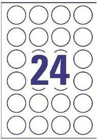 Avery L3415 - Runde Etiketten - weiß - 40 mm rund - 2400 Stck. (100 Bogen x 24) (L3415-100)