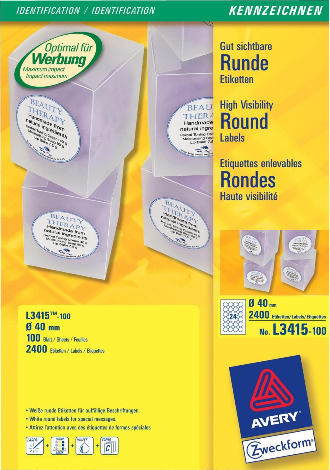 Avery L3415 - runde Etiketten - 2400 Stck. |