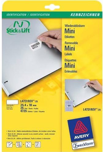 Avery - Abziehbare Etiketten - 25 Stck. 189) (L4731REV-25)