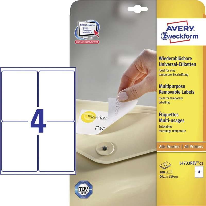 Avery L4733REV - Abziehbare Etiketten - weiß - 99,1 x 139 mm - 100 Stck. (25 Bogen x 4) (L4733REV-25)