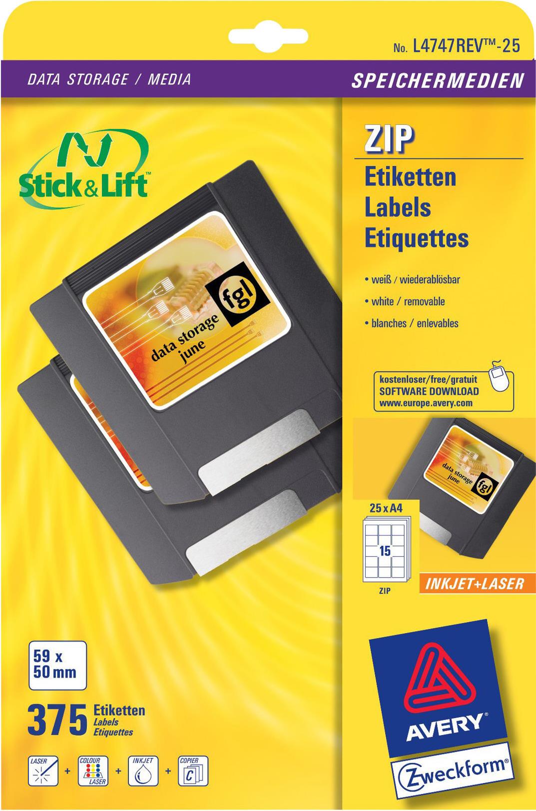 Führen Sie einen kleinen Laden? Speichern Sie Ihre Daten auf unterschiedliche Datenträger? Mit den ZIP Disketten-Etiketten von Avery Zweckform können Sie Ihre Datenablage professionell gestalten. Die wiederablösbaren Etiketten eignen sich ideal für oft wechselnde Daten. Einfach rückstandsfrei ablösen und Etiketten aufkleben.