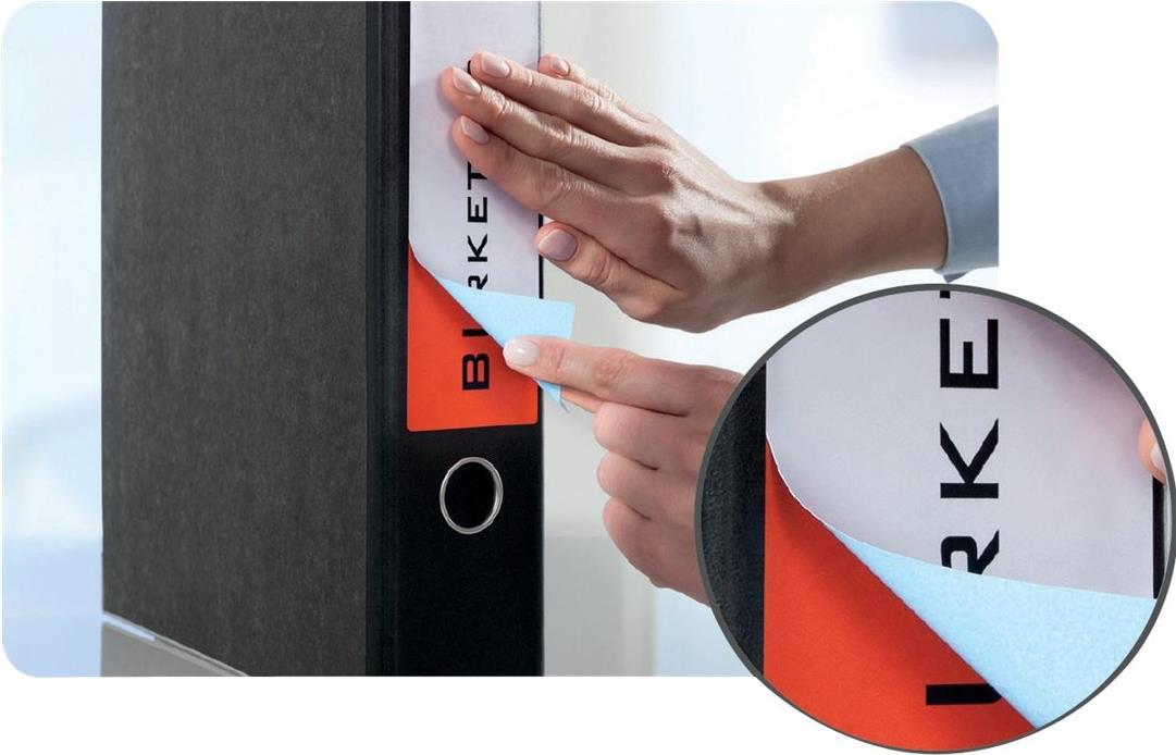 Halten Sie Ordnung in Ihren Unterlagen mit bedruckbaren Ordner-Etiketten. Weiße Ordner-Etiketten sind neutral und machen es Ihnen einfach Ihr Firmenlogo einzubinden. Durch das blickdichte Material können Sie alte Ordner erneut verwenden. Die alte Beschriftung scheint nicht durch. Die Rückenschilder im Format 61 x 297 mm lassen sich mit allen gängigen Druckern und Kopierern bedrucken. Die Aufkleber eignen sich optimal für lange, breite Ordner.