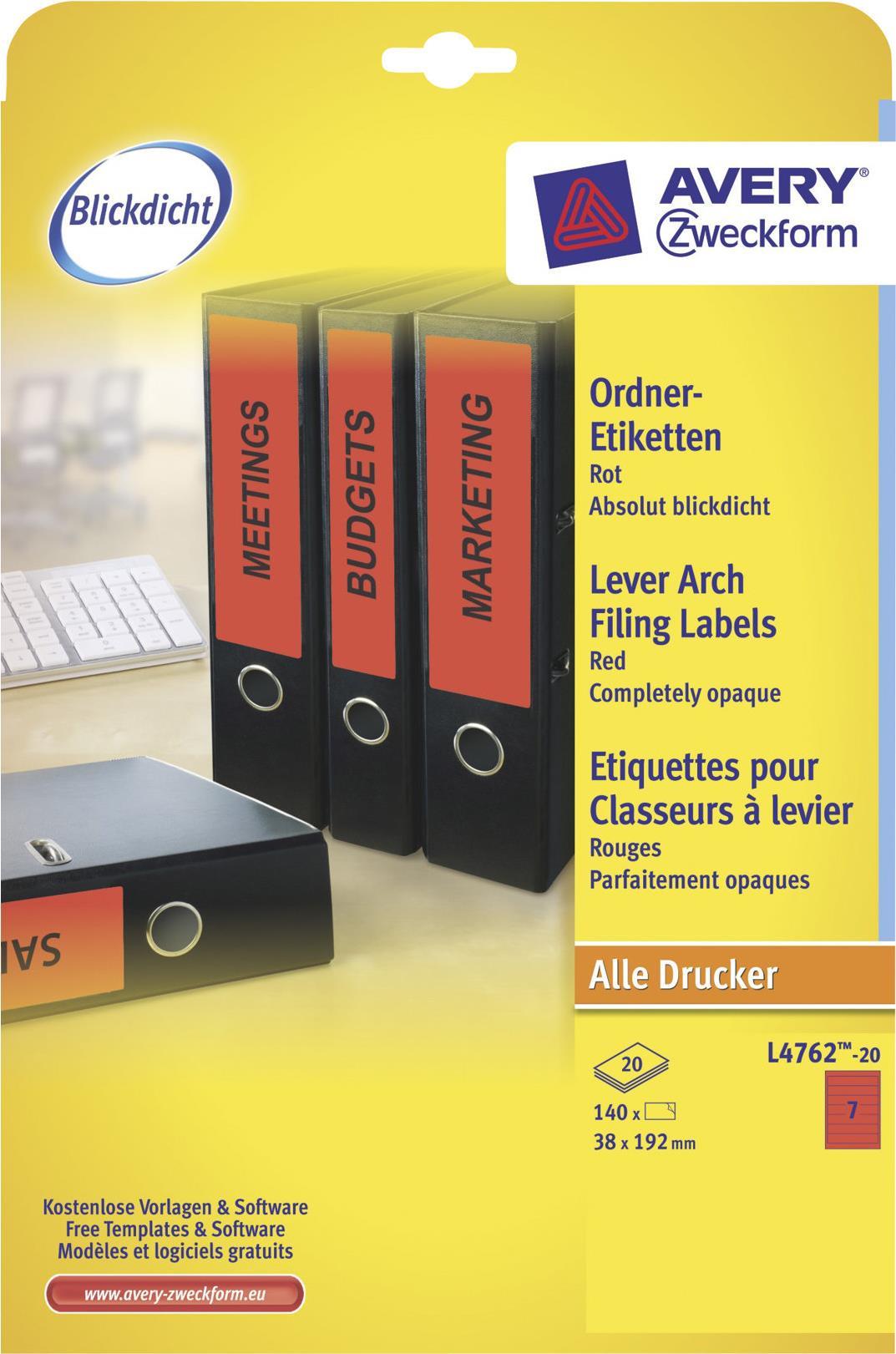 Avery L4762 - Aktenetiketten (File Folder Labels) - Rot - 38 x 192 mm - 140 Stck. (20 Bogen x 7) (L4762-20)
