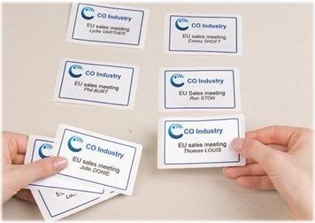 Erleichtern Sie sich die Organisation von Veranstaltungen, Seminaren und Konferenzen. Mit Namens-Etiketten von Avery Zweckform erkennt man sein Gegenüber sofort. Die Namens-Schilder haften zuverlässig auf Kleidung und lassen sich rückstandsfrei wieder ablösen. Die Namens-Etiketten im Format 80 x 50 mm bieten einen garantiert staufreien Druckerdurchlauf auf allen gängigen Laserdruckern. Gestalten und bedrucken Sie die Namens-Etiketten schnell und einfach mit den kostenlosen Vorlagen und der Software von Avery Zweckform.