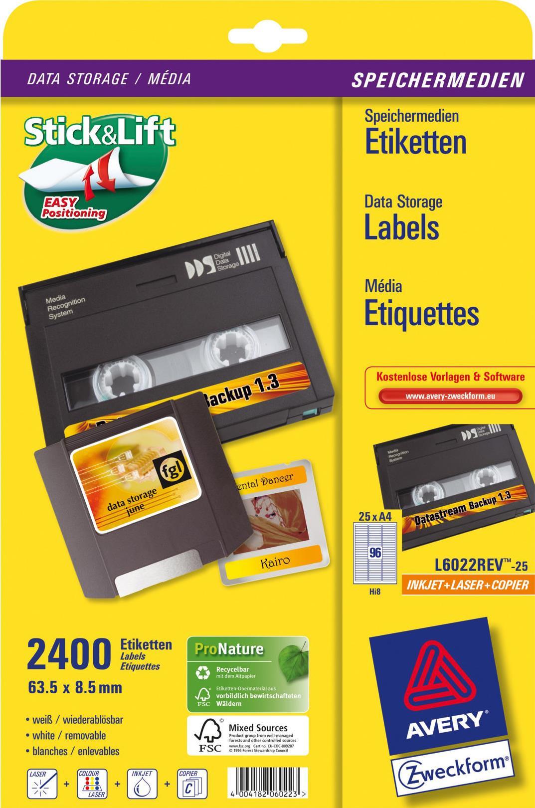 Avery L6022REV - Abziehbare Datenspeicheretiketten - weiß - 8,5 x 63,5 mm - 2400 Stck. (25 Bogen x 96) (L6022REV-25)