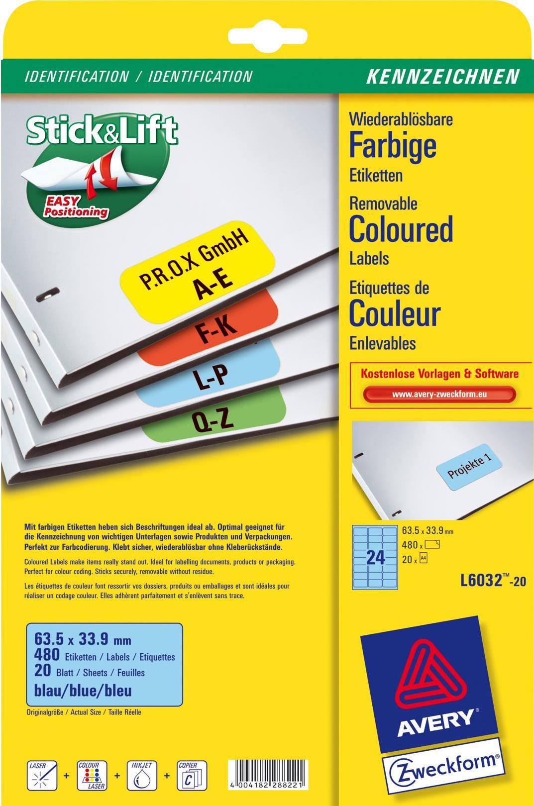 Avery L6032 - abziehbare Etiketten - 480 Etikett(en) |