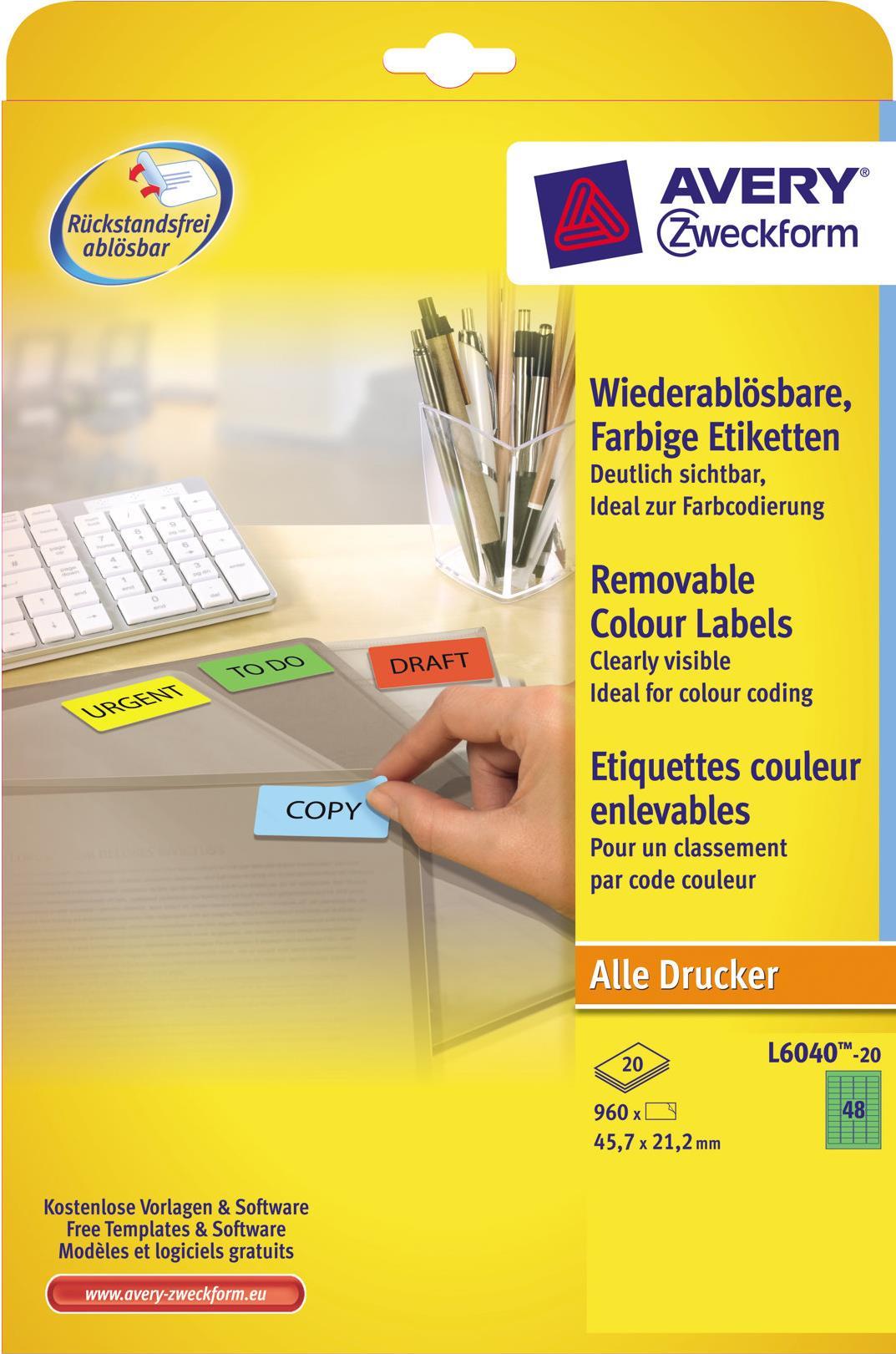 Avery - Etiketten - grün - A4 (210 x 297 mm) - 20 Stck. 48) (L6040-20)