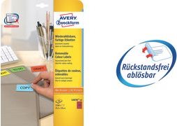 Farbige Etiketten von Avery Zweckform helfen Ihnen dabei den Überblick über Ihre Unterlagen zu behalten. Erstellen Sie mit den Aufklebern eine einheitliche Farbcodierung. So finden Sie und Ihre Kollegen sofort die gesuchten Unterlagen. Die grünen wiederablösbaren Etiketten im Format 45,7 x 21,2 mm lassen sich mit allen gängigen Druckern und Kopierern bedrucken. Perfekt für temporäre Beschriftungen geeignet. Dank der kostenlosen Avery Zweckform Vorlagen und Software-Lösungen können Sie die farbigen Etiketten schnell und einfach gestalten und drucken!