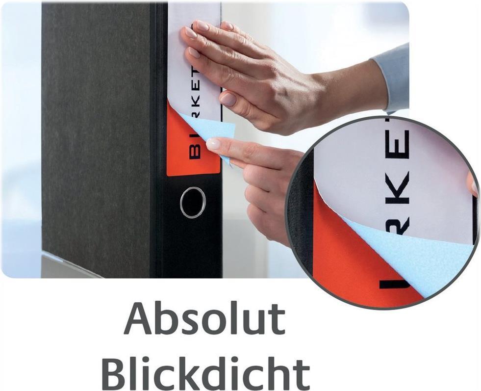 Halten Sie Ordnung in Ihren Unterlagen mit bedruckbaren Ordner-Etiketten. Weiße Ordner-Etiketten sind neutral und machen es Ihnen einfach Ihr Firmenlogo einzubinden. Durch das blickdichte Material können Sie alte Ordner erneut verwenden. Die alte Beschriftung scheint nicht durch. Die Rückenschilder im Format 34 x 192 mm lassen sich mit allen gängigen Druckern und Kopierern bedrucken. Die Aufkleber eignen sich optimal für kurze, schmale Ordner. Gestalten und bedrucken Sie die Ordner-Etiketten mit unserer kostenlosen und benutzerfreundlichen Software.