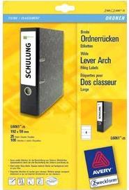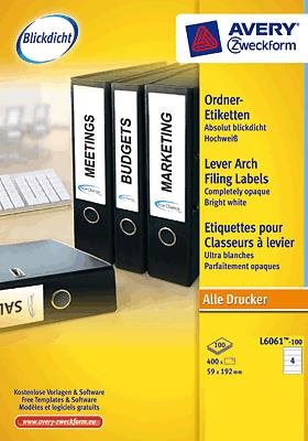 Avery L6061 - Weiß - 59 x 192 mm 400 Stck. (100 Bogen x 4) Aktenetiketten
