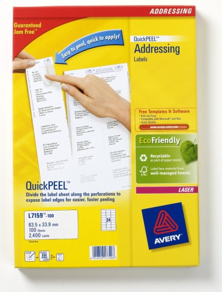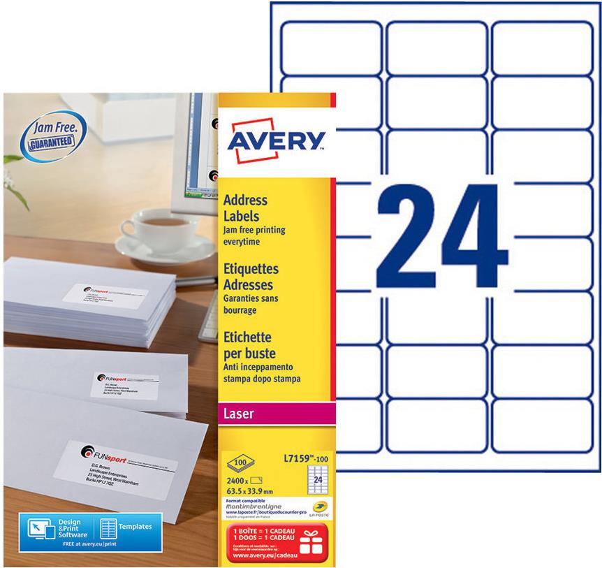 Avery - Adressetiketten - weiß - 63,5 x 33,9 mm - 2400 Etikett(en) (100 Bogen x 24) (L7159-100)
