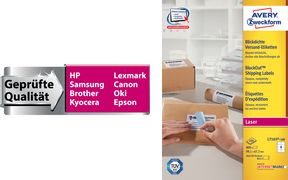 Die blickdichten Versand-Etiketten von Avery Zweckform sind die perfekte Wahl wenn Sie z.B. B4/C4 Umschläge nutzen. Diese Versand-Etiketten im Format 99,1 x 67,7 mm decken alte Beschriftungen ab. So können Sie bei Bedarf Verpackungen erneut verwenden. Ausgewählte Formate sind im Produkt Deutsche Post INTERNETMARKE enthalten. Dank INTERNETMARKE können Sie Ihr Porto und Empfängeradresse direkt auf die Versand-Etiketten von Avery Zweckform drucken. Die Etiketten haben einen garantiert staufreien Druckerdurchlauf. Druckerdurchlauf für Laserdrucker getestet und bestätigt durch TÜV.