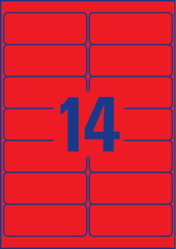 Avery L7263R - Neonrot - 38.1 x 99.1 mm 350 Etikett(en) (25 Bogen x 14) Etiketten