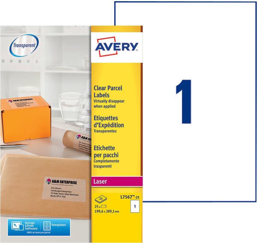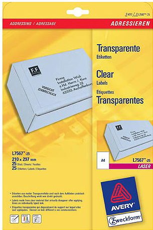 Avery - Etiketten - durchsichtig - A4 (210 x 297 mm) - 25 Stck. (1 Bogen x 25) (L7567-25)
