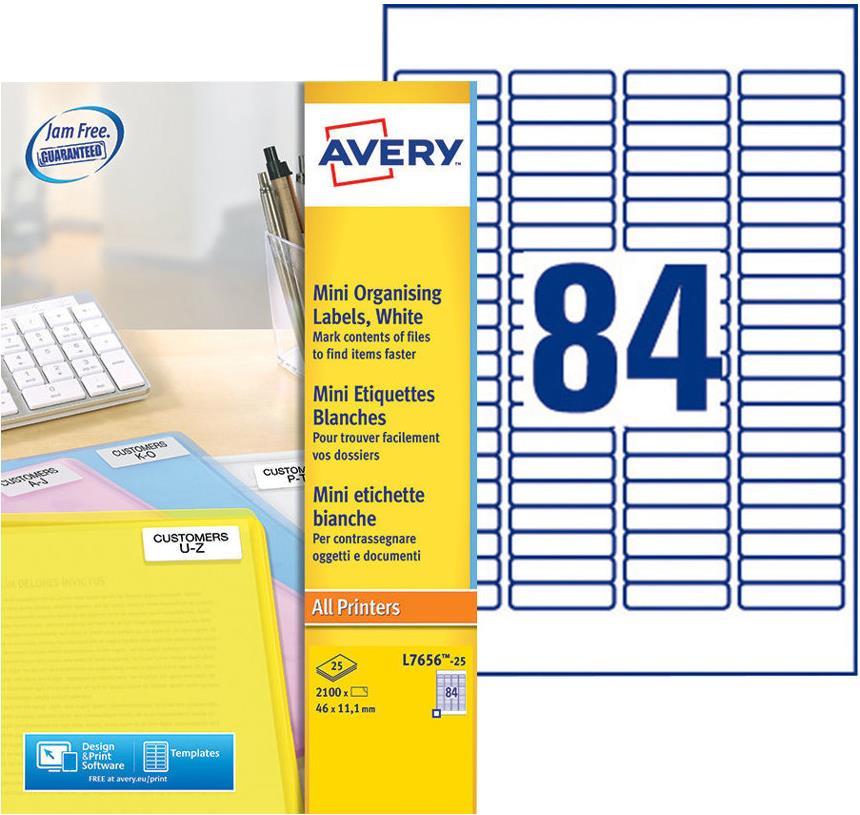 Avery - Etiketten - weiß - 46 x 11,1 mm - 2100 Etikett(en) (25 Bogen x 84) (L7656-25)