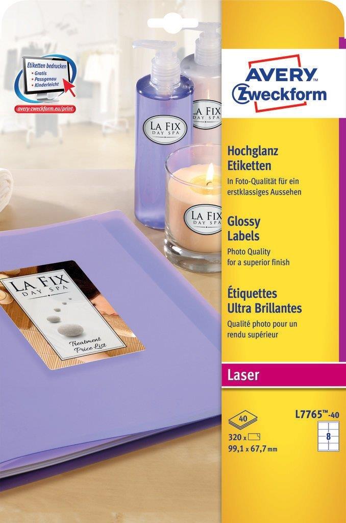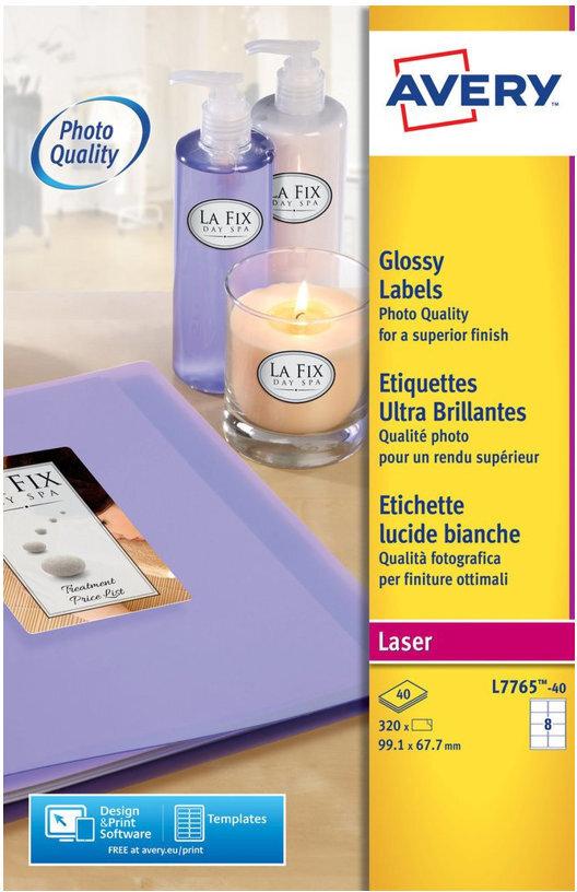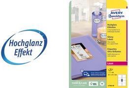 Verleihen Sie Ihren Produkten den letzten Schliff. Die Etiketten mit Spezialbeschichtung von Avery Zweckform eignen sich optimal, um Ihre Produkte oder Werbemittel hervorzuheben. Mit kleinen Details, wie diesen hochglänzenden Etiketten im Format 99,1 x 67,7 mm, ermöglichen Sie ein perfektes strahlendes Aussehen. Dank der kostenlosen Avery Zweckform Vorlagen und Software-Lösungen können Sie die Hochglanz Etiketten schnell und einfach gestalten und drucken!