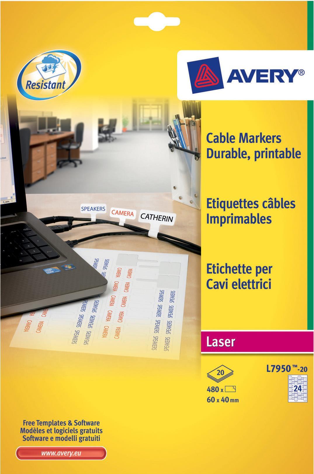 AVERY Zweckform Kabel-Etiketten, 60 x 40 mm, weiß, Laser Polyester-Folie, für Laser, Colour Laser und Kopierer (L7950-20)