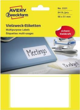 Avery Multi-Purpose Labels 3331 - Selbstklebende Etiketten - weiß - 51 x 98 mm 84 Stck. (3331)
