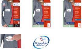 Die selbstklebenden, wiederablösbaren Namens-Etiketten J4785-20 für Inkjetdrucker von AVERY ZWECKFORM im Format 80 x 50 mm erleichtern Ihnen die Organisation von Veranstaltungen, Seminaren und Konferenzen (200 weiße Namensetiketten pro Packung). Die Namensschilder aus Folienmaterial haften zuverlässig auf Kleidung und Textilien und lassen sich rückstandsfrei wieder ablösen. Die Rückseiten-Stanzung des Namensschilds erlaubt das Heraustrennen des Namensetiketts samt Trägerfolie für eine spätere Verwendung. Die Namensetiketten bieten einen garantiert staufreien Druckerdurchlauf auf allen gängigen Inkjetdruckern.