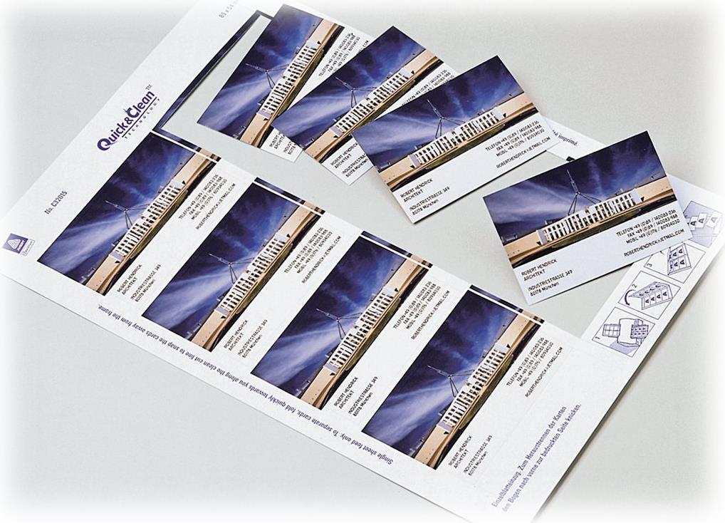 Gestalten und drucken Sie Ihre Visitenkarten selbst und vermeiden Sie Wartezeiten bei externen Druckereien! Die Superior Visitenkarten von Avery Zweckform garantieren professionelle Druckqualität auf allen gängigen Druckertypen. Die einseitig bedruckbare Visitenkarte, mit einer Grammatur von 200 g/m², hat dank patentierter Quick&Clean Technologie absolut glatte Kanten. Mit der Avery Zweckform Software Design & Print Online erstellen und drucken Sie Ihre Visitenkarten schnell und einfach am eigenen PC!