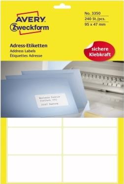 Avery Zweckform - Permanent-Adressklebeetiketten - weiß - 95 x 47 mm - 240 Etikett(en) (20 Bogen x 12) (3350)