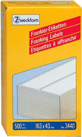 Avery Zweckform - Frankier-Klebeetiketten, permanent - weiß - 163 x 43 mm 500 Etikett(en) (250 Bogen x 2) (3440)